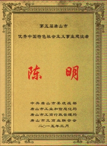 熱烈慶祝我公司執(zhí)行董事陳明同志,榮獲“優(yōu)秀中國特色社會主義事業(yè)建設者”稱號